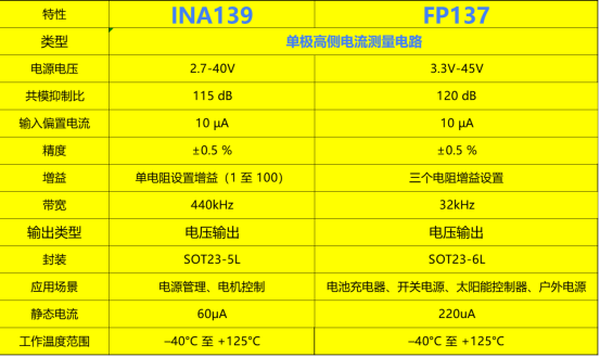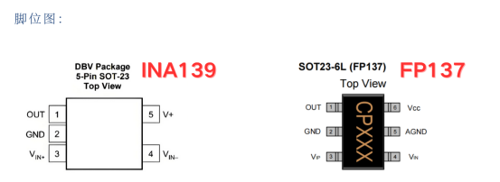 在封装上,INA139为5引脚SOT-23,FP137为6引脚SOT-23。PCB设计上布局兼容,仅需根据新增引脚调整少量走线,典型应用电路也基本一致 。