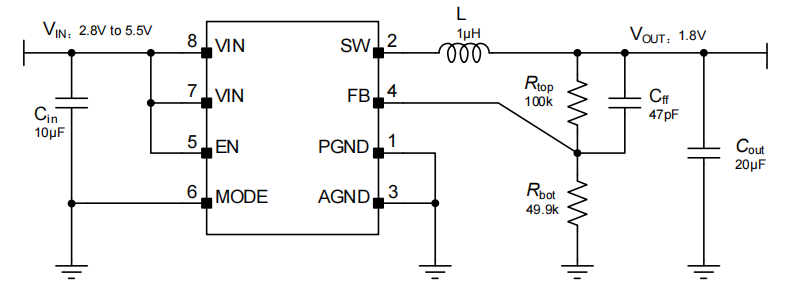 (2)全面开放PWM(脉宽调制)与PFM(脉频调制)双重工作模式的灵活选择(Selectable PWM and PFM Operating Modes),赋予研发工程师在轻载高效率与重载低纹波之间的绝对调校自由。
