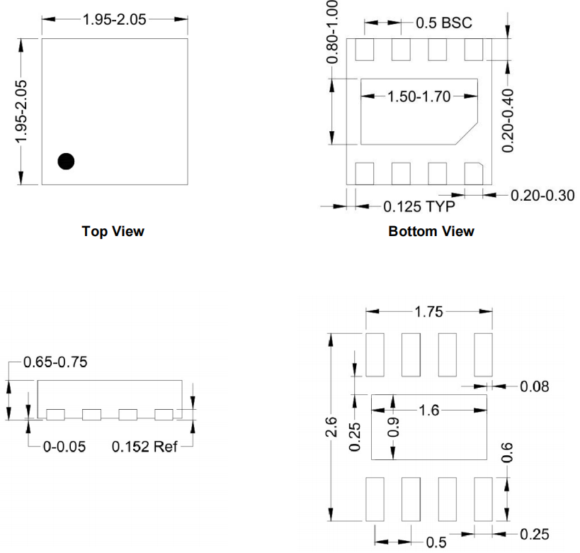 图3:SA23001A车规级高导热DFN2mm×2mm-8微型封装尺寸图