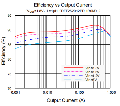 (1)在如此微小的高频封装内,依然能够源源不断地提供高达1A的满血负载电流(Up to 1A Output Current),为复杂的数字前端提供充沛的瞬态动力。