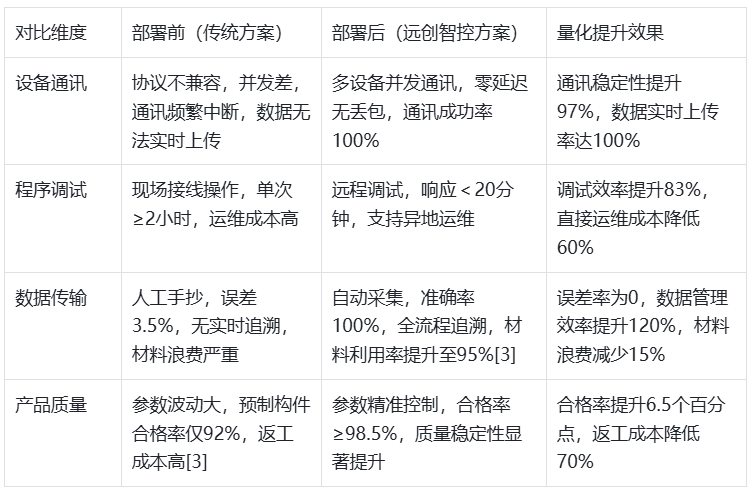 该技术方案无需修改PLC原有程序,具有改造成本低廉、部署周期短、运维高效、适配水泥车间恶劣工况等显著优势,既满足了水泥制品行业数字化升级、质量追溯的核心需求,又保障了预制构件生产线24小时连续稳定运行,契合企业降本增效、提升产品竞争力的目标。其成功应用为水泥制品行业及类似流程工业场景中老旧PLC设备的网络化改造提供了一套高效、经济、可行的工程解决方案。