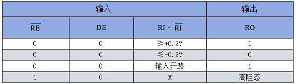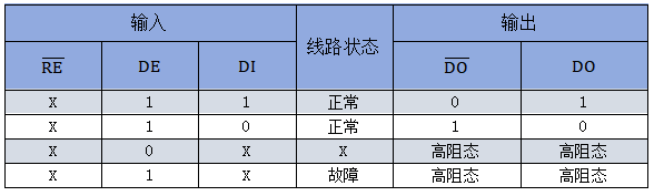 注:接收器具有失效安全设计,开路时输出为高阻,X为任意状态。