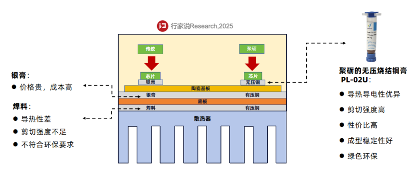 当前,面对愈发严苛的环保法规与持续提升的性能需求,传统高铅焊料已难以适配下一代功率器件的发展。聚砺的无压烧结铜膏 PL-02U,凭借绿色无铅的环保优势与卓越的导热导电性能,为功率器件行业提供了一条跨越式的材料升级路径。它不仅是企业应对环保挑战的理想选择,更是提升器件可靠性的关键保障,将为更多的功率器件产品迈向更高性能提供坚实支撑。