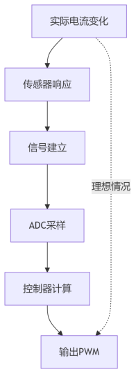 从控制结构来看,电流环是一个典型的闭环系统,但这个闭环并不是理想的“实时系统”。在实际实现中,从电流产生到被控制器使用,中间至少会经历几个环节:传感器响应、信号建立、ADC采样以及软件计算。
