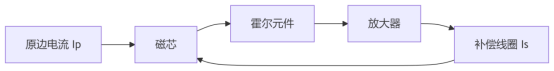 因此,在需要同时兼顾动态性能、精度和隔离的场景中,闭环霍尔方案会更常见一些。它通过反馈方式将磁芯工作点维持在接近零磁通状态,从而减少磁滞和非线性带来的影响。图5为闭环霍尔电流传感器原理,通过补偿电流实现磁通平衡。