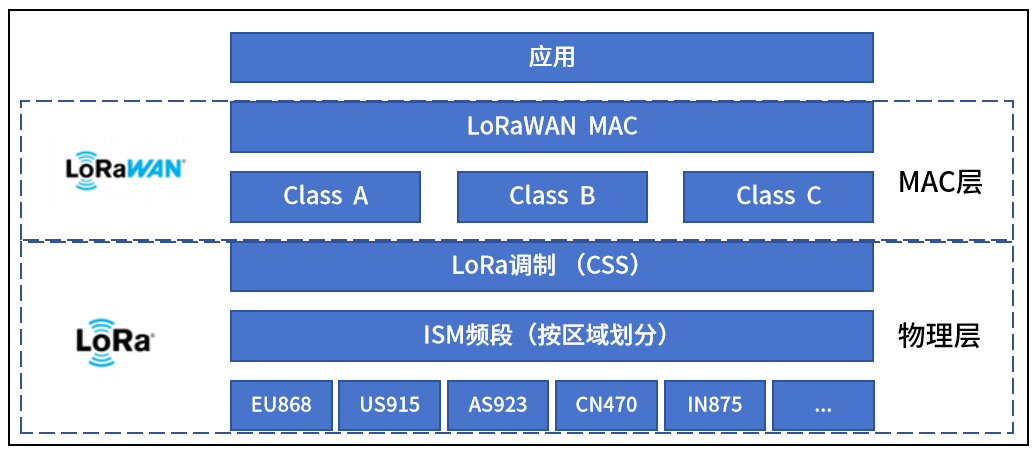LoRa 是物理层(PHY)上的调制技术,其核心为基于线性调频扩频(CSS)的调制方案,它仅规定了无线信号的生成、扩频、调制与解调机制,定义了带宽、扩频因子(SF)、编码率等物理层参数,并不涉及链路层接入控制、帧格式定义、网络层路由与管理等上层协议规范。开发者可基于LoRa物理层构建私有通信链路,无需依赖标准MAC协议即可实现点对点或星型组网。