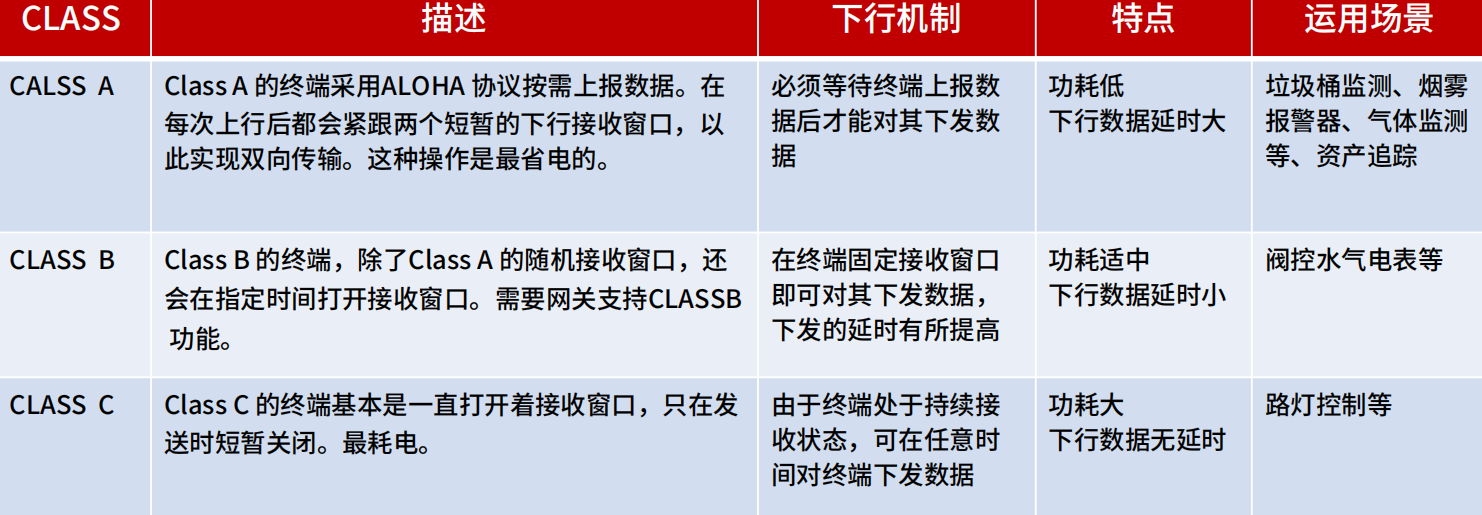 工作方式上,LoRaWAN 采用双向异步通信机制,支持 Class A、Class B、Class C 等多种终端工作模式,以ALOHA随机接入为基础,结合自适应数据速率与信道跳频机制,在保证低功耗运行的同时,可实现远距离、大容量、高可靠性的物联网数据传输。