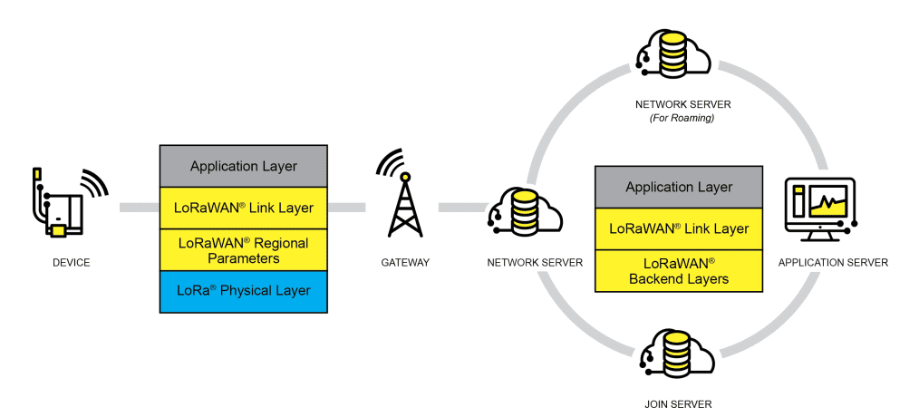 LoRaWAN 网络架构简示图 图源:LoRa联盟官网