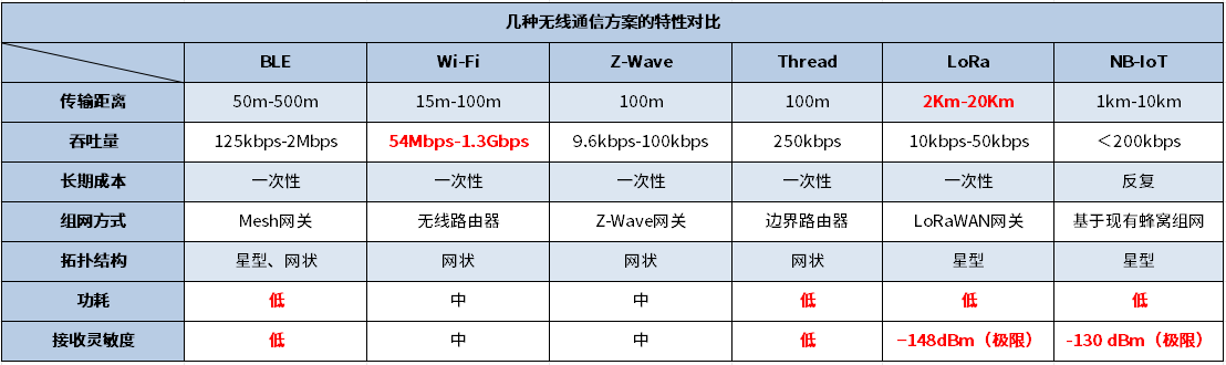 LoRa与BLE、Wi-Fi、Thread、NB-IoT等无线通信技术的对比
