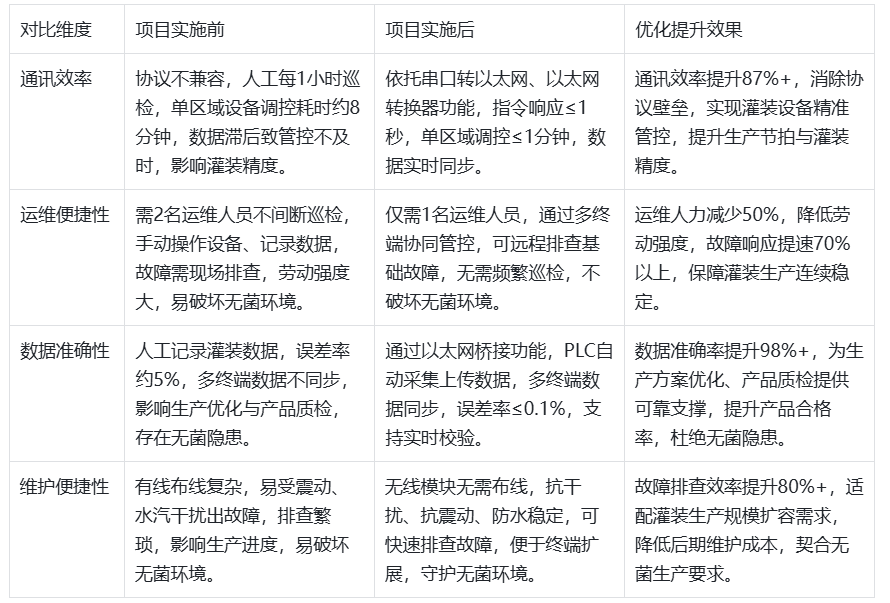 项目实施前,核心痛点集中在通讯层面,严重制约智能化灌装落地: