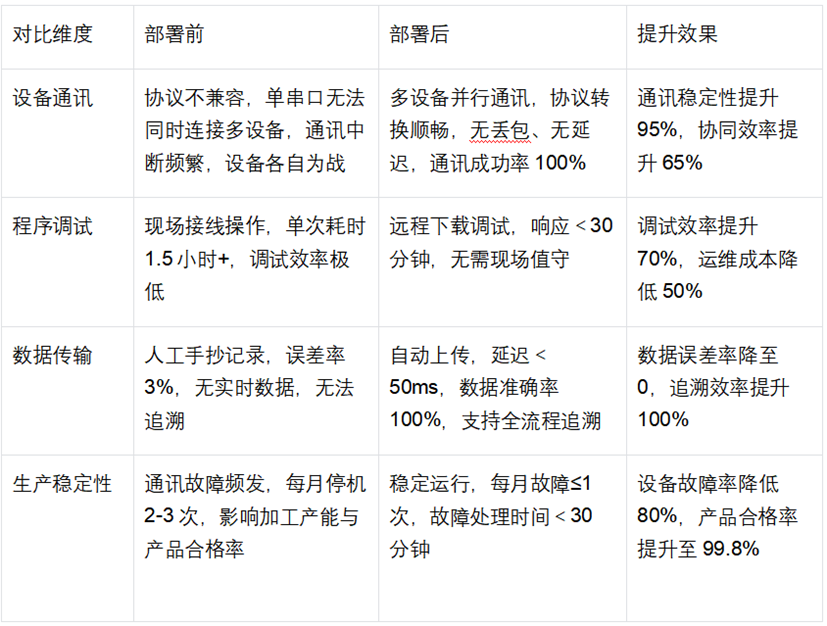 数据无法追溯,管控水平不足:因PLC与上位机无法实现实时通讯,零部件加工速度、加工精度等核心生产数据需人工手抄记录,易出现漏记、错记问题,数据误差率达3%,无法实现生产数据全流程追溯,不符合自动化工厂数字化管控要求,难以精准把控生产质量、优化生产流程。