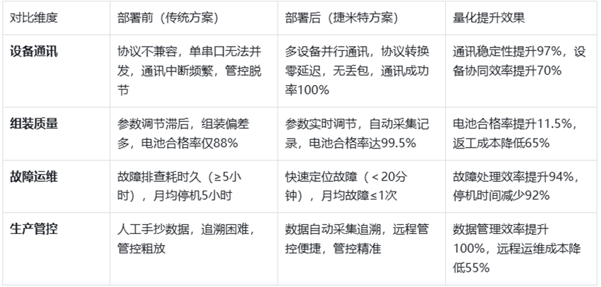 提升通讯抗干扰能力,保障产线在机器人振动、电磁干扰、电芯粉尘工况下稳定运行,减少因通讯故障导致的电池报废、产线中断等问题。