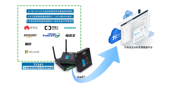 - 数据定时采集主动上报,支持多中心通信,可同时与多个后台服务器进行通信,监控数据可同时上报省、市、县级水文管理平台;