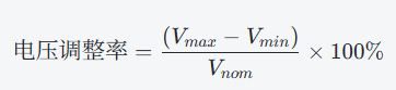 其中,Vmax为输出电压在负载变化后的最大值,Vmin为输出电压在负载变化后的最小值,Vnom为输出电压的额定值。