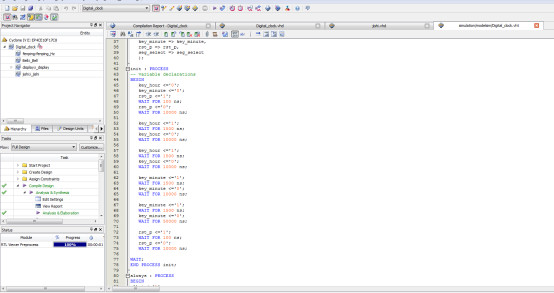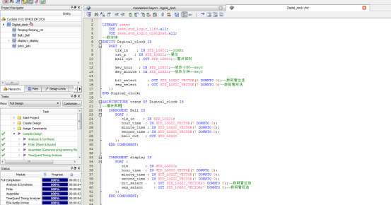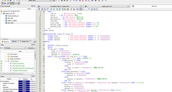 名称:整点报时数字电子时钟设计VHDL代码Quartus 正点原子开拓者开发板