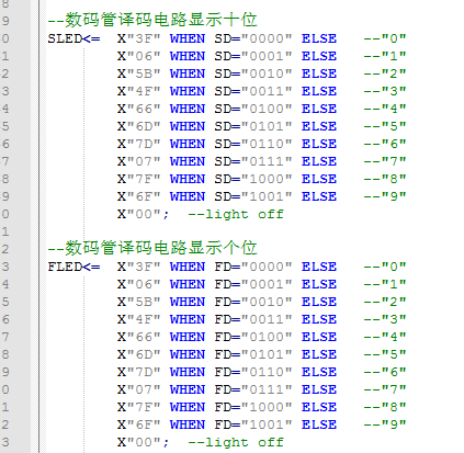 (4)时间值FD、SD采用8段LED显示,显示电路程序参考基础电路的数码管译码电路。