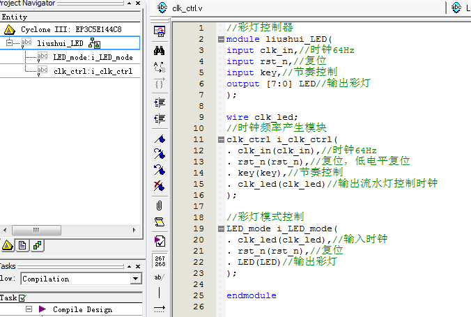 名称:多路彩灯控制器设计Verilog代码Quartus仿真