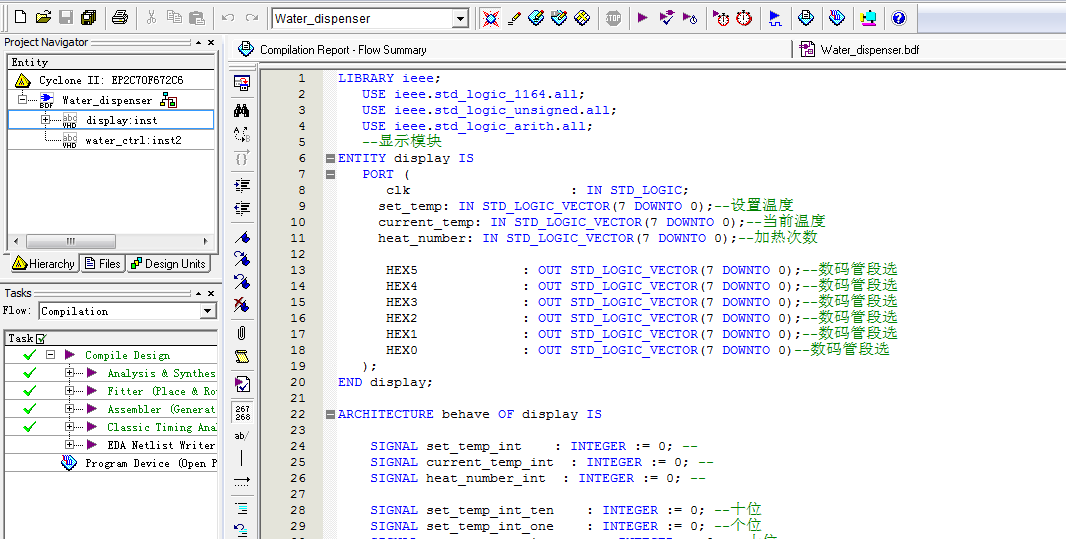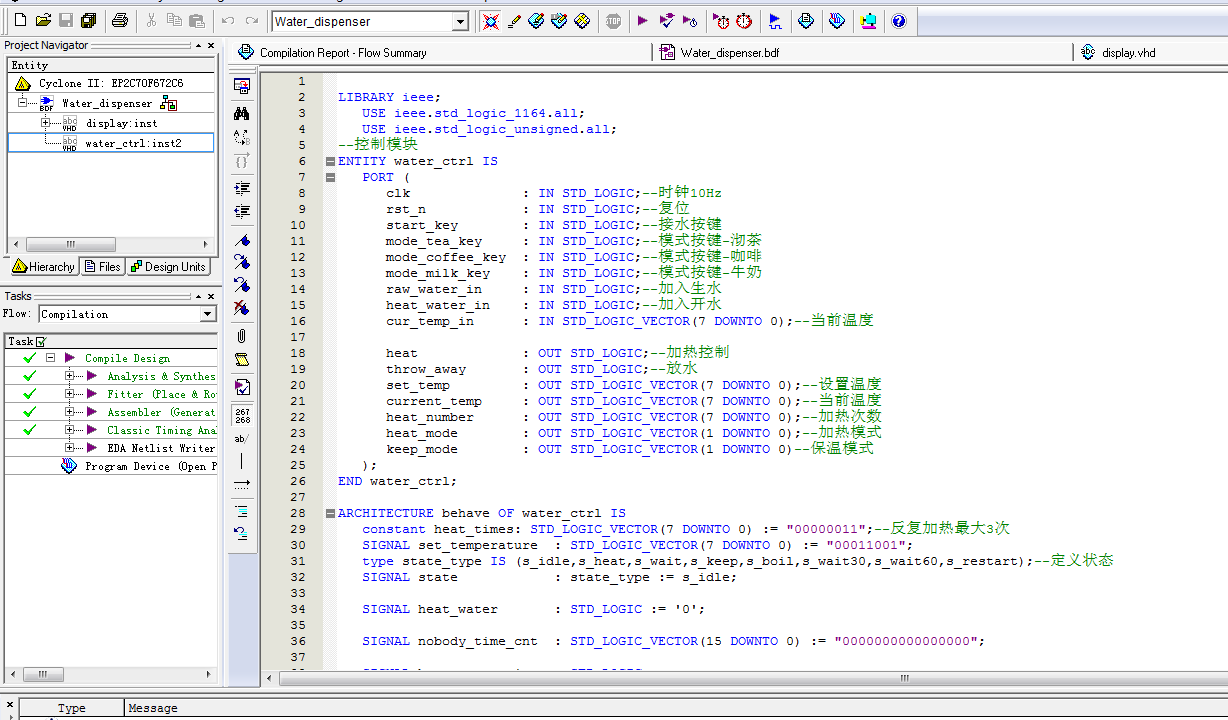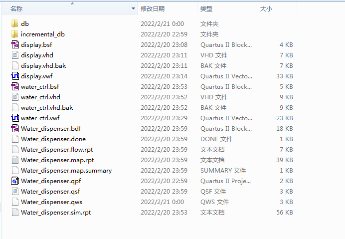 名称:智能饮水机设计VHDL代码Quartus仿真