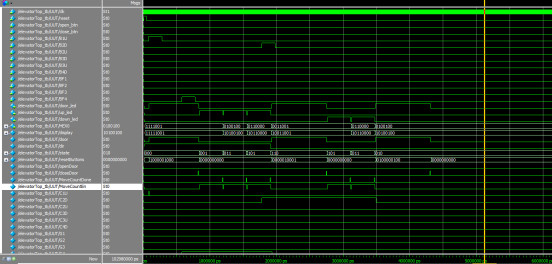 (5)电梯到达有停站请求的楼层,电梯门打开,开门指示灯亮,稍后,电梯门关闭(开门指示灯灭)。若按下电梯内开门按钮,则电梯一直处于开门状态,若按下电梯内关门按钮,则电梯立即关门。电梯继续进行,直至执行完最后一个请求信号后停留在当前层;