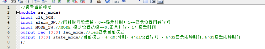 设置模式模块,根据按键输入控制当前的模式,模式用led灯显示