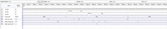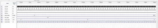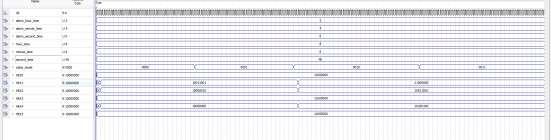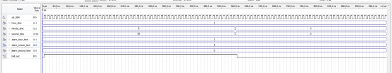上图可以看到,当分钟和小时一致时,闹钟响铃,bell_out为高电平