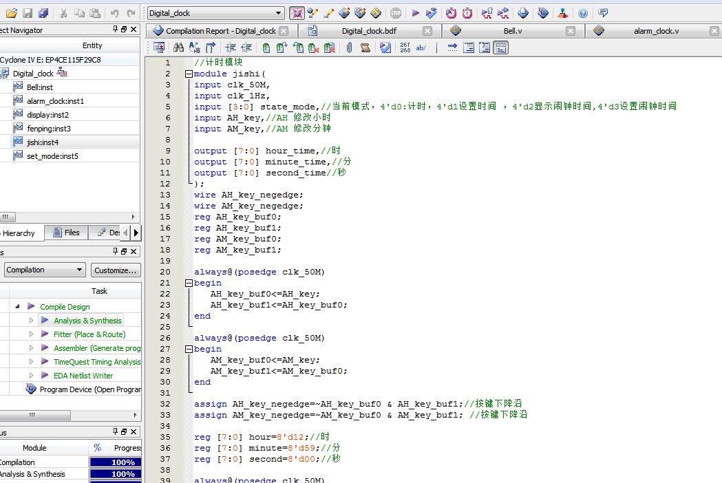 名称:数字钟设计Verilog代码Quartus DE2-115开发板