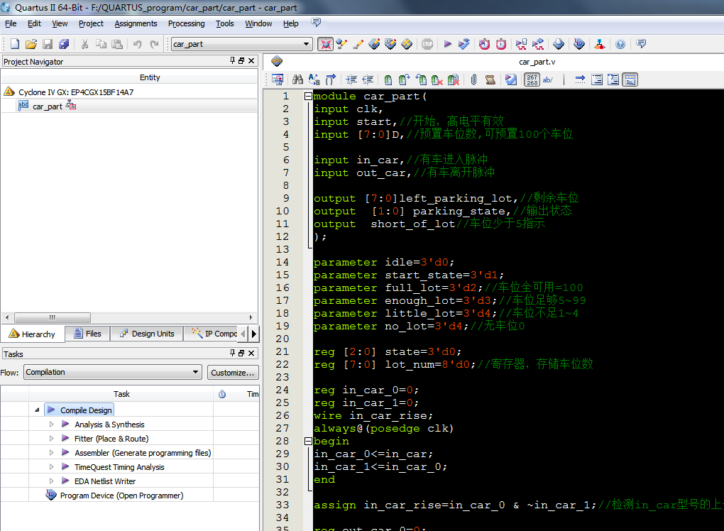 名称:停车场停车位计数器设计Verilog代码Quartus仿真