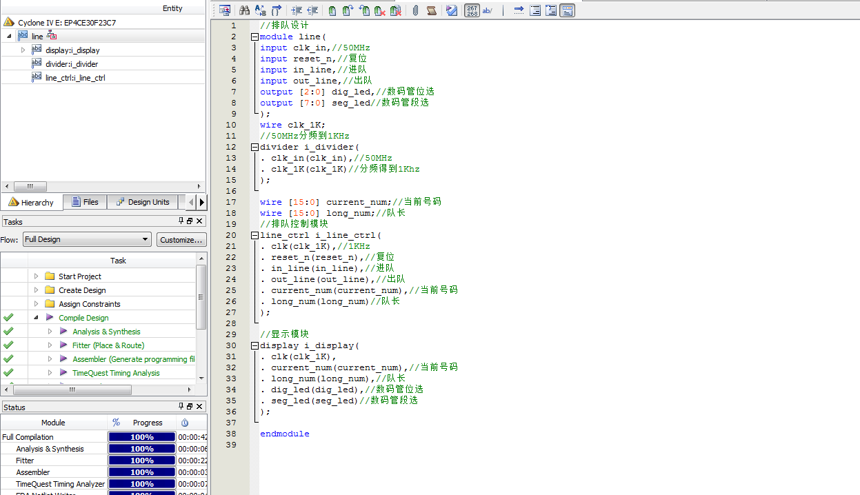 名称:排队电路设计Verilog代码Quartus EP4C开发板