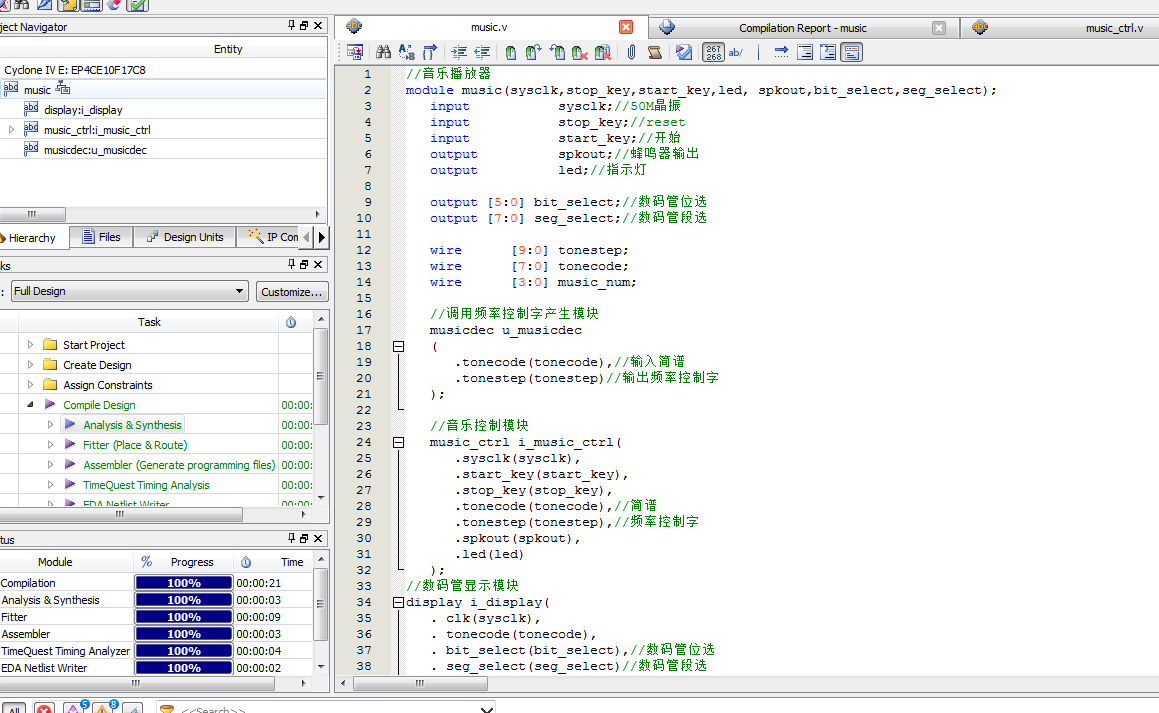 名称:乐曲演奏器设计Verilog代码Quartus 正点原子新起点开发板