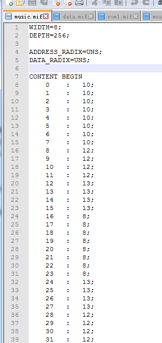 茉莉花的简谱存储在ROM中,具体值可以打开music.mif文件查看
