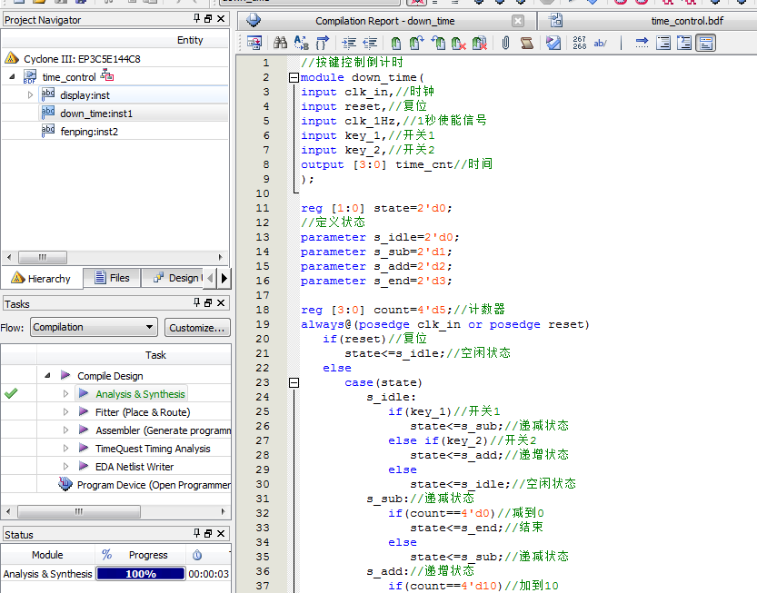 名称:正数倒数计时器设计Verilog代码Quartus仿真
