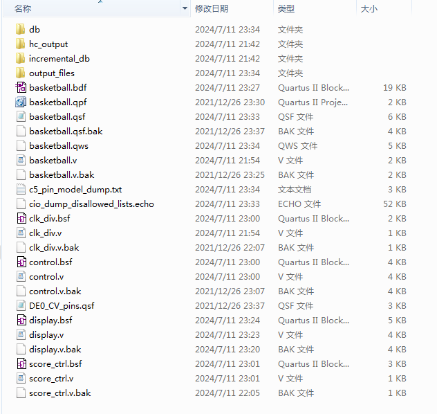 名称:篮球记分计时器设计Verilog代码Quartus DE0-CV开发板
