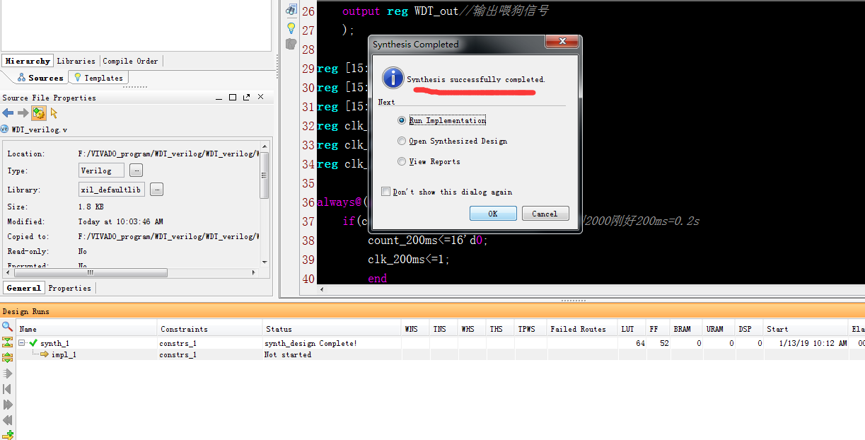 名称:看门狗定时器设计Verilog代码VIVADO仿真