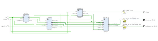 3.要求实现溢出报警功能。即当频率高于999KHZ时,产生一报警信号,点亮LED灯,从而实现溢出报警功能。