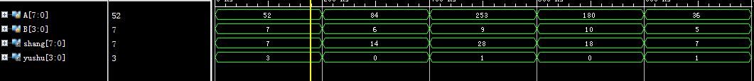modu //A/Ble div_8(A,B,shang,yushu); parameter N=4; input [2*N-1:0] A;//被除数 input [N-1:0] B;//除数 output reg [2*N-1:0] shang;//商 output reg [N-1:0] yushu;//余数 reg [2*N-1:0] bufa; reg [2*N-1:0] bufb; reg [4*N-1:0] result; //经过寄存器 always@(A or B) begin bufa<=A; bufb<=B; end //设计除法函数,函数名div_AB function [15:0]div_AB; input [7:0] AA;//被除数 input [7:0] BB;//除数 integer i; reg [15:0] buf_aa; reg [15:0] buf_bb; begin buf_aa={8'h00,AA};//扩展到16位 buf_bb={BB,8'h00};//扩展到16位 for(i=0;i<8;i=i+1) begin buf_aa=buf_aa<<1;//左移 if(buf_aa[15:8]>=BB) buf_aa=buf_aa-buf_bb+1'b1;//相减 else buf_aa=buf_aa; end div_AB=buf_aa; end