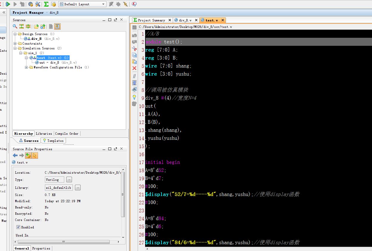 1、设计8位除法器;