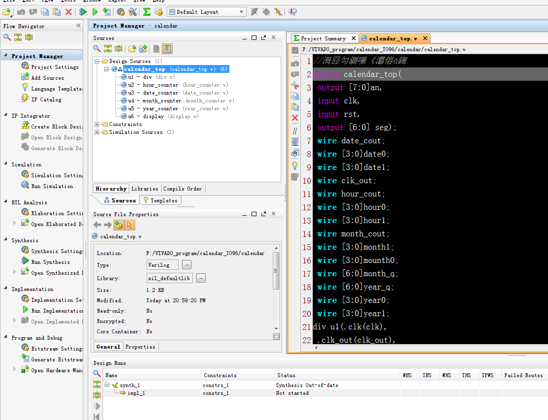 名称:基于FPGA的简易万年历设计Verilog代码VIVADO仿真