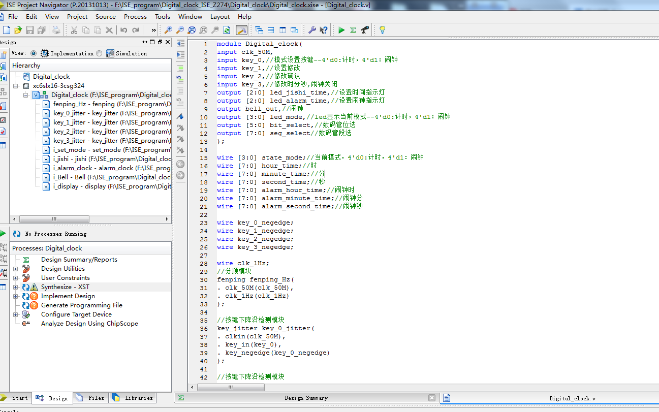 名称:基于FPGA的多功能时钟设计Verilog代码ISE仿真
