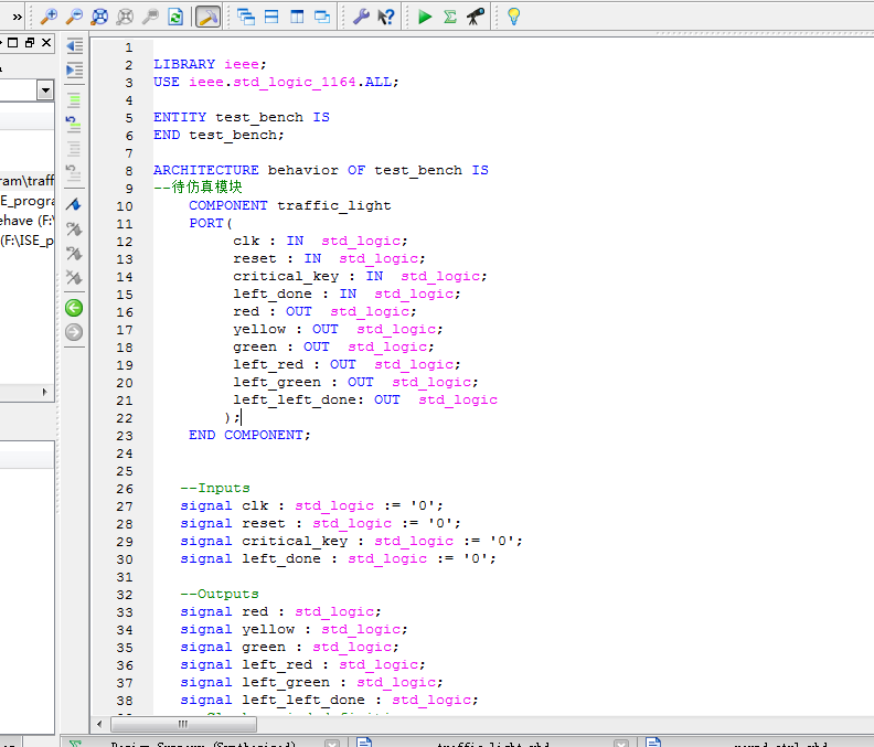 5.需要分别完成以下两个模块的VHDL设计并分别进行仿真测试:圆灯控制器和箭头灯控制器;