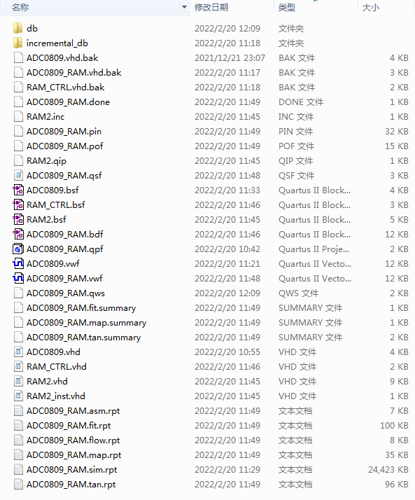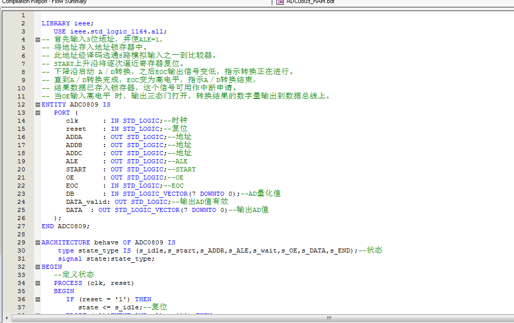 名称:基于FPGA的adc0809采集数据设计VHDL代码Quartus仿真