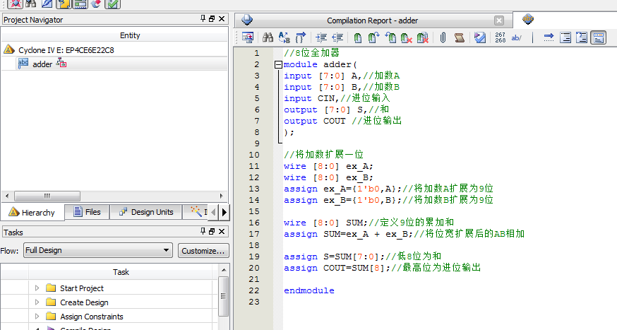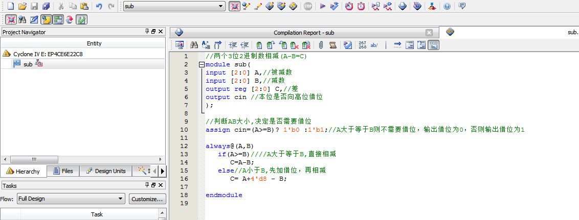 名称:基于FPGA的3位减法器和8位全加器Verilog代码Quartus仿真