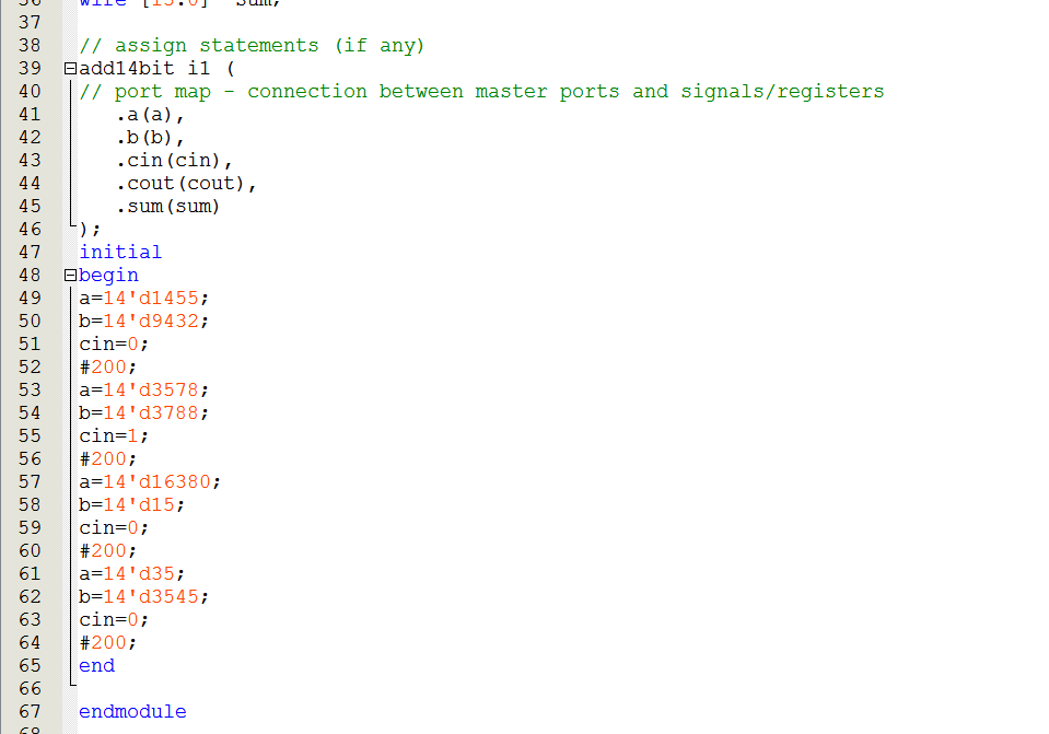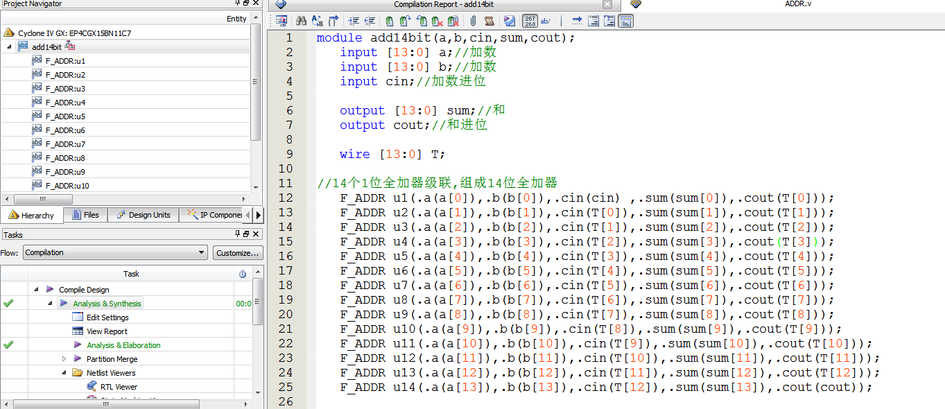 名称:基于FPGA的14位全加器设计Verilog代码Quartus仿真