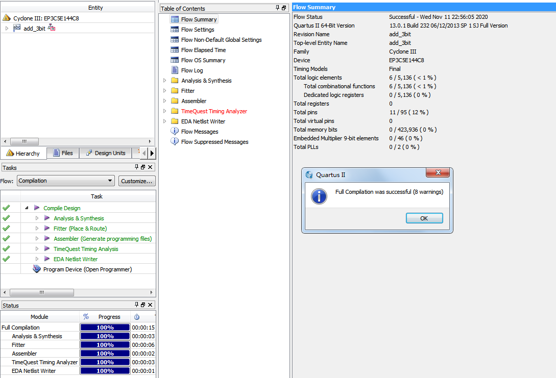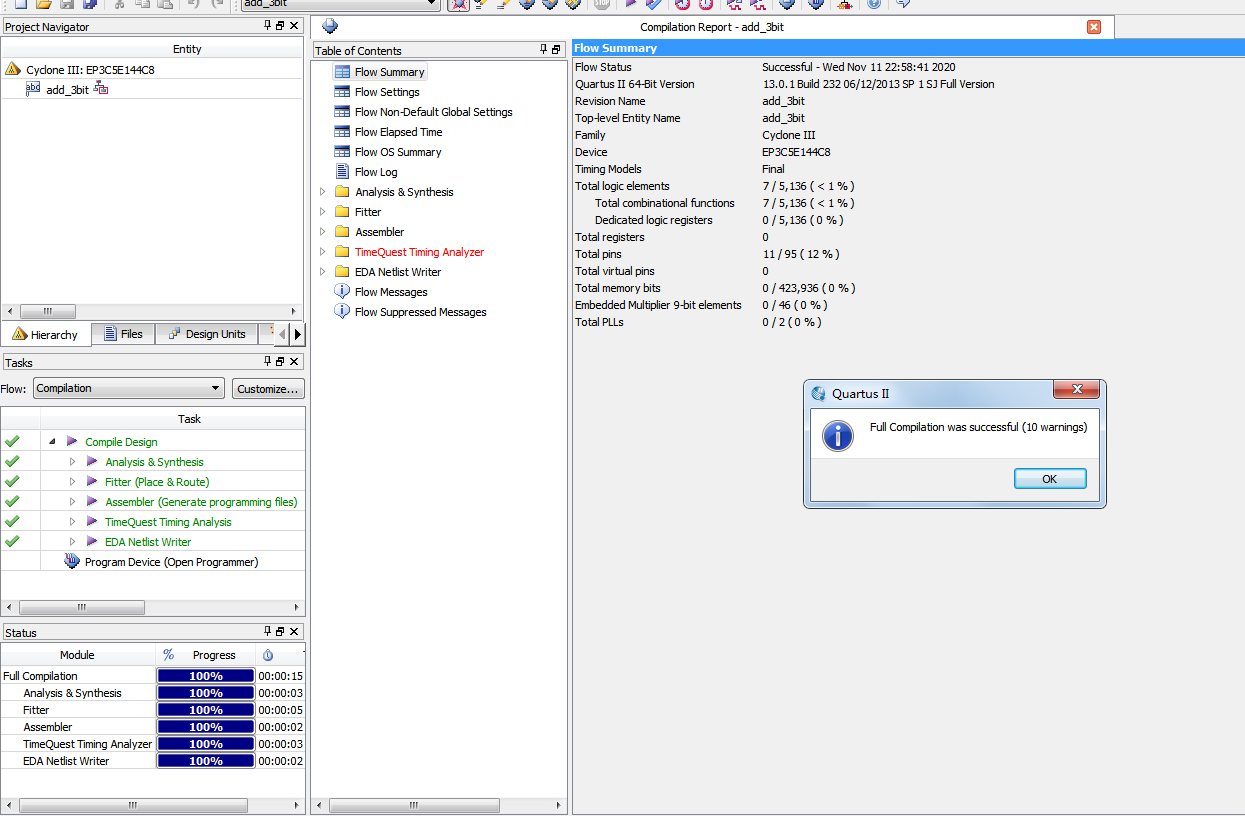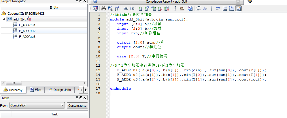 名称:基于FPGA的串行进位加法器和超前进位加法器Verilog代码Quartus仿真