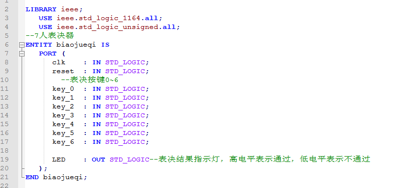 名称:基于FPGA的7人表决器设计VHDL代码Quartus仿真