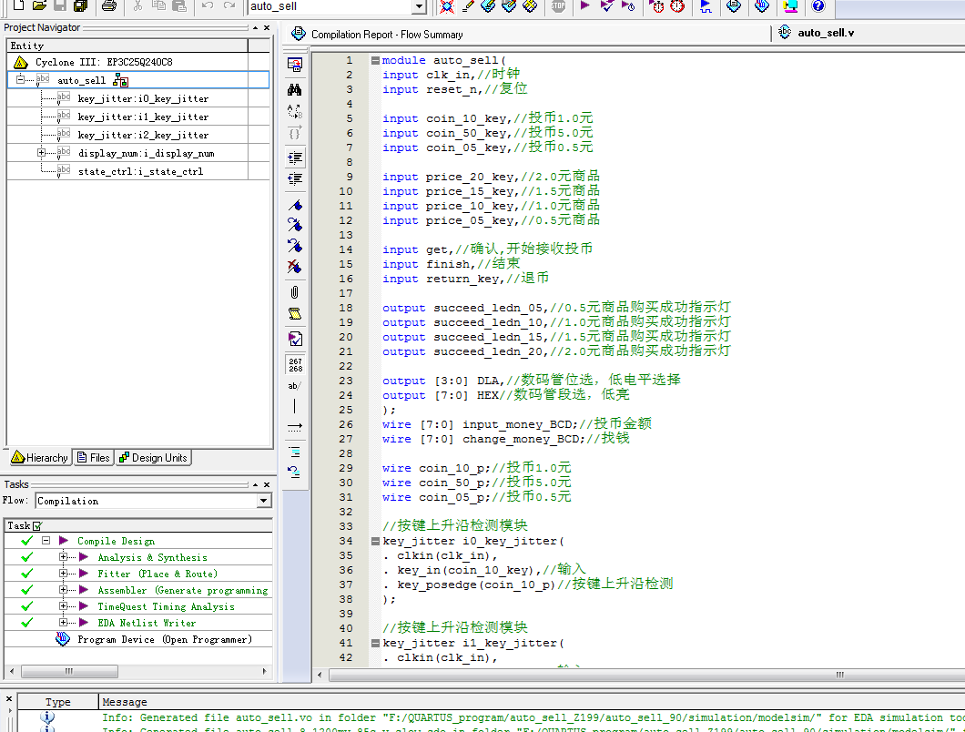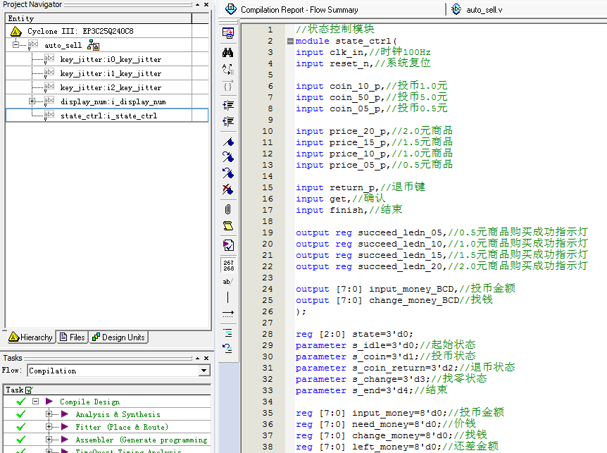 名称:基于FPGA的自动售货机设计Verilog代码Quartus仿真