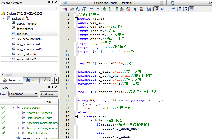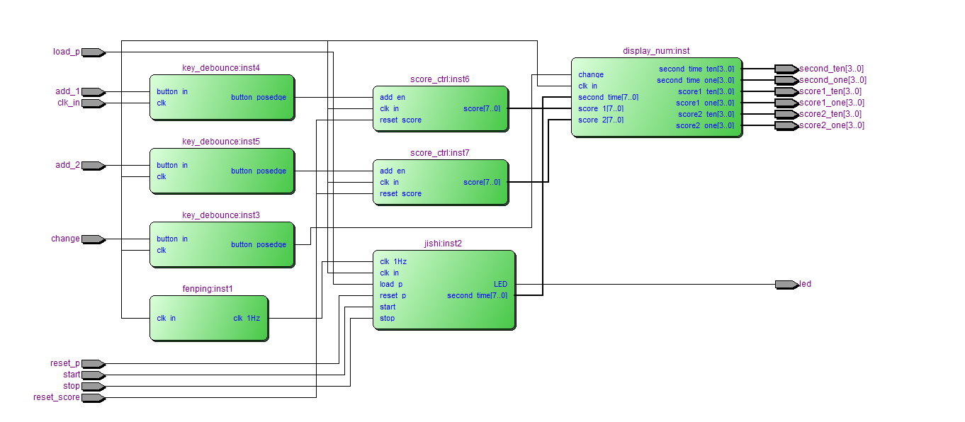 名称:基于FPGA的篮球比赛计分计时器Verilog代码Quartus仿真