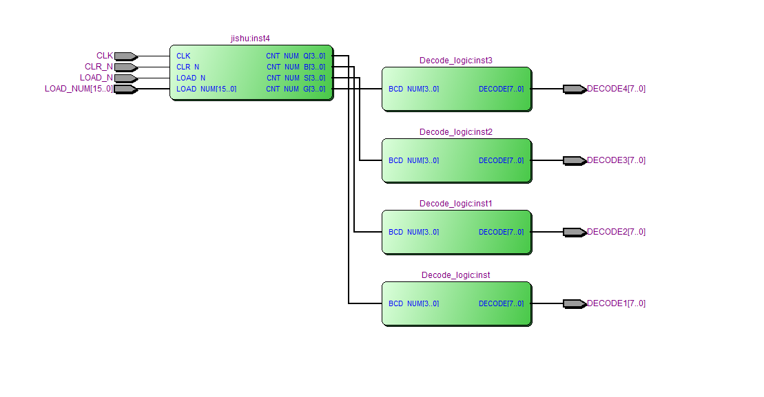 2、8421BCD码7段译码部分可以参见74LS48功能,用VHDL实现译码逻辑,并阐述设计原理,给出关键 blockdiagram设计框图。