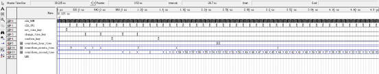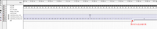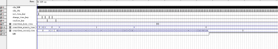 LIBRARY ieee; USE ieee.std_logic_1164.all; ENTITY Digital_clock IS PORT ( clk_in : IN STD_LOGIC;--时钟 switch : IN STD_LOGIC; key_1 : IN STD_LOGIC;--设置时间 key_2 : IN STD_LOGIC;--确认 key_3 : IN STD_LOGIC;--设置时分秒 LED : OUT STD_LOGIC; SEL : OUT STD_LOGIC_VECTOR(7 DOWNTO 0);--数码管位选 seg_select : OUT STD_LOGIC_VECTOR(7 DOWNTO 0)--数码管段选 ); END Digital_clock; ARCHITECTURE behave OF Digital_clock IS --模块声明 --显示模块 COMPONENT display IS PORT ( clk : IN STD_LOGIC; countdown_hour_time : IN STD_LOGIC_VECTOR(7 DOWNTO 0); countdown_minute_time : IN STD_LOGIC_VECTOR(7 DOWNTO 0); countdown_second_time : IN STD_LOGIC_VECTOR(7 DOWNTO 0); SEL : OUT STD_LOGIC_VECTOR(7 DOWNTO 0);--数码管位选 seg_select : OUT STD_LOGIC_VECTOR(7 DOWNTO 0) ); END COMPONENT; --倒计时模块 COMPONENT timing IS PORT ( clk_50M : IN STD_LOGIC; clk_1Hz : IN STD_LOGIC; set_time_key : IN STD_LOGIC; confirm_key : IN STD_LOGIC; change_time_key : IN STD_LOGIC; LED : OUT STD_LOGIC; countdown_hour_time : OUT STD_LOGIC_VECTOR(7 DOWNTO 0); countdown_minute_time : OUT STD_LOGIC_VECTOR(7 DOWNTO 0); countdown_second_time : OUT STD_LOGIC_VECTOR(7 DOWNTO 0) ); END COMPONENT; --分频模块 COMPONENT fenping IS PORT ( clk_50M : IN STD_LOGIC; clk_1Hz : OUT STD_LOGIC ); END COMPONENT; --按键消抖 COMPONENT key_jitter IS PORT ( clkin : IN STD_LOGIC; key_in : IN STD_LOGIC; key_negedge : OUT STD_LOGIC ); END COMPONENT; SIGNAL countdown_hour_time : STD_LOGIC_VECTOR(7 DOWNTO 0);--时 SIGNAL countdown_minute_time : STD_LOGIC_VECTOR(7 DOWNTO 0);--分 SIGNAL countdown_second_time : STD_LOGIC_VECTOR(7 DOWNTO 0);--秒 SIGNAL key_1_negedge : STD_LOGIC;--按键下降沿 SIGNAL key_2_negedge : STD_LOGIC;--按键下降沿 SIGNAL key_3_negedge : STD_LOGIC;--按键下降沿 SIGNAL clk_1Hz : STD_LOGIC;--1Hz SIGNAL clk_50M : STD_LOGIC;--50MHz BEGIN clk_50M<= switch and clk_in; --分频模块 fenping_Hz : fenping PORT MAP ( clk_50M => clk_50M, clk_1Hz => clk_1Hz--1Hz ); --按键消抖 key_1_jitter : key_jitter PORT MAP ( clkin => clk_50M, key_in => key_1, key_negedge => key_1_negedge ); --按键消抖 key_2_jitter : key_jitter PORT MAP ( clkin => clk_50M, key_in => key_2, key_negedge => key_2_negedge ); --按键消抖 key_3_jitter : key_jitter PORT MAP ( clkin => clk_50M, key_in => key_3, key_negedge => key_3_negedge ); i_timing : timing PORT MAP ( clk_50M => clk_50M, clk_1Hz => clk_1Hz, set_time_key => key_1_negedge,--设置时间 confirm_key => key_2_negedge,--确认 change_time_key => key_3_negedge,--设置时分秒 LED =>LED, countdown_hour_time => countdown_hour_time,--时 countdown_minute_time => countdown_minute_time,--分 countdown_second_time => countdown_second_time--秒 ); i_display : display PORT MAP ( clk => clk_50M, countdown_hour_time => countdown_hour_time,--时 countdown_minute_time => countdown_minute_time,--分 countdown_second_time => countdown_second_time,--秒 SEL => SEL,--数码管位选 seg_select => seg_select--数码管段选 ); END behave;