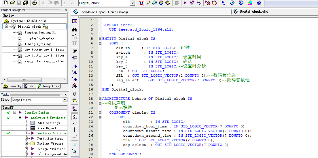 3、在 Quartusll中完成顶层设计并编译通过;