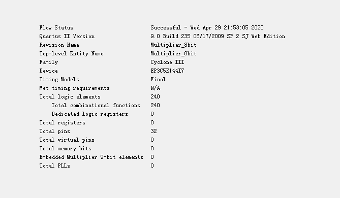 名称:基于FPGA的8位booth乘法器Verilog代码Quartus仿真